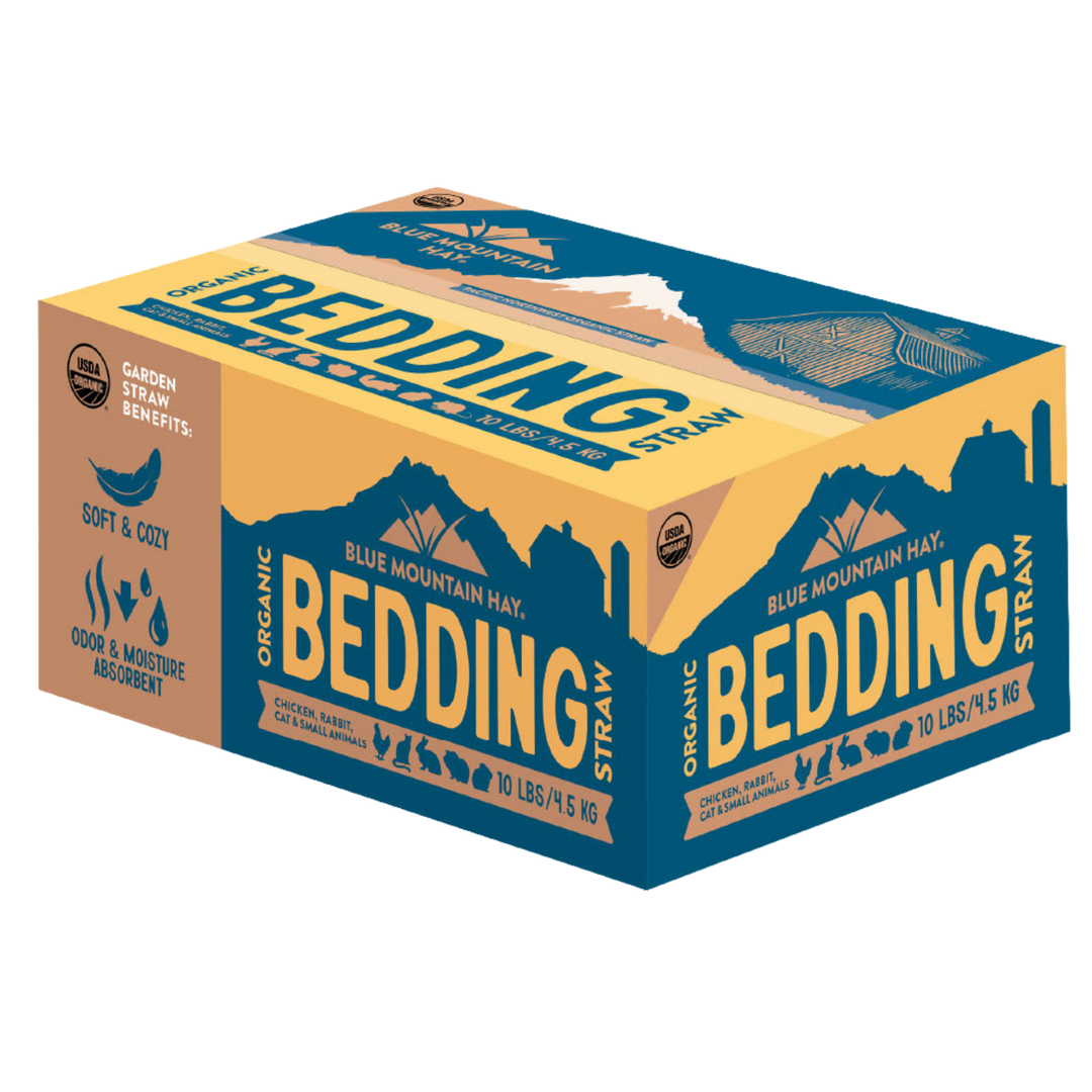 Shop NowBlue Mountain Hay organic bedding straw is farm-fresh from the Pacific Northwest and ideal for chickens, ducks, and other flock animals. Clean, chemical-free, and naturally insulating, it keeps coops dry, comfortable, and odor-controlled. If you’re looking for high-quality organic bedding straw for your flock, you’ve come to the right place. Try our farm-fresh straw today!